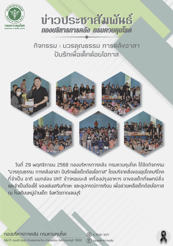 - กิจกรรม : บวรคุณธรรม การคลังอาสา ปันรักเพื่อเด็กด้วยโอกาส