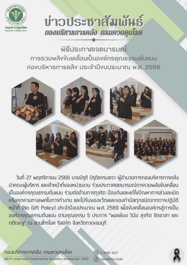 การดำเนินงานการเป็นองค์กรคุณธรรมต้นแบบ ประจำปีงบประมาณ พ.ศ. 2569 ของกองบริหารการคลัง