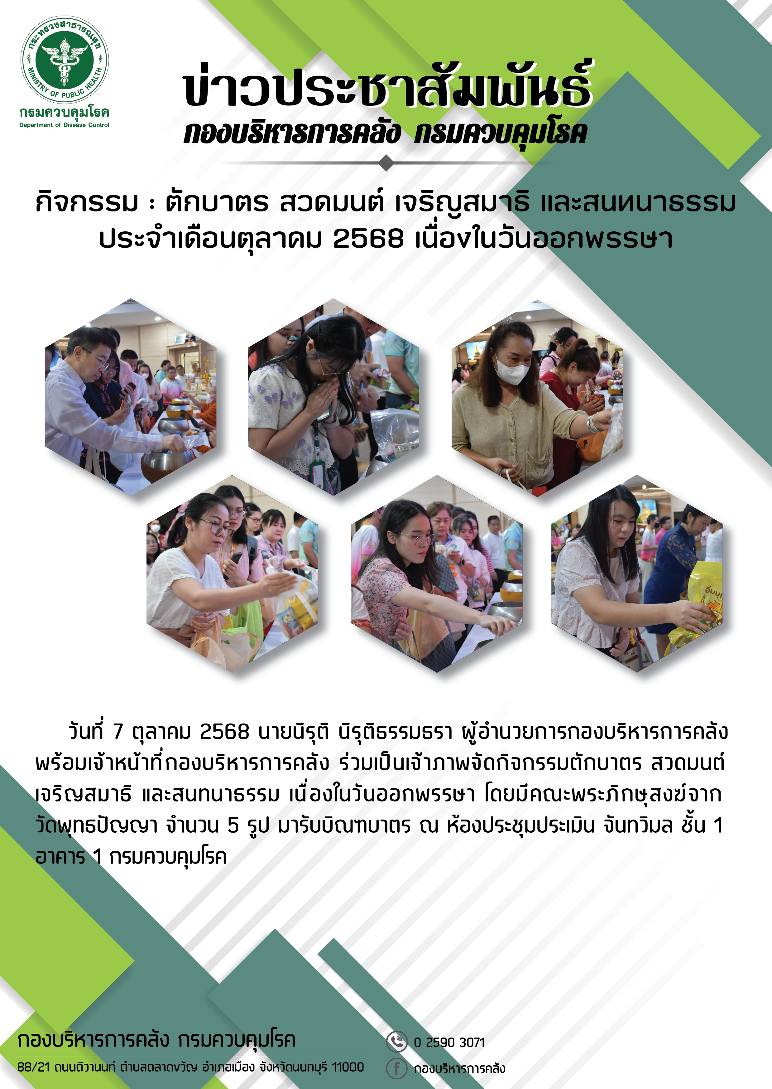 - กิจกรรม : ตักบาตร สวดมนต์ เจริญสมาธิ และสนทนาธรรม ประจำเดือนตุลาคม 2568 เนื่องในวันออกพรรษา