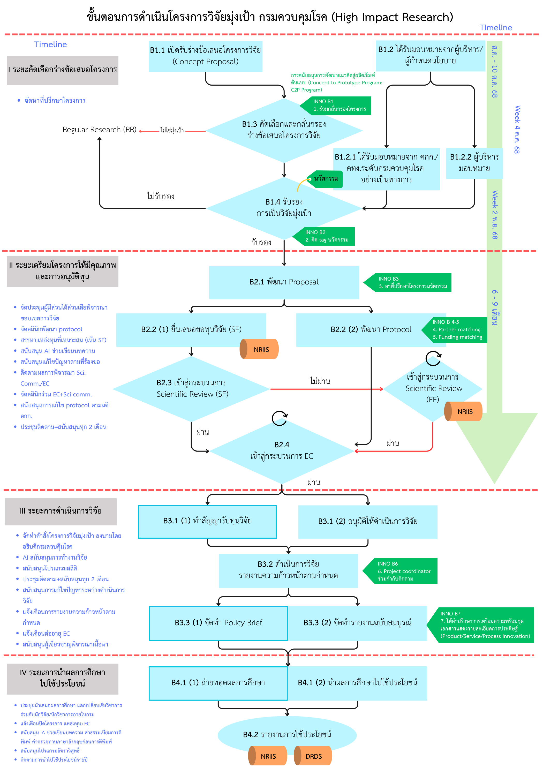 หมายถึง โครงการวิจัยที่มุ่งเป้าหมายสร้างผลผลิตที่สามารถนำไปประยุกต์ใช้เป็นแนวทางในการกำหนดนโยบายในระดับประเทศ ภูมิภาค สังคม ชุมชน ก่อให้เกิดผลกระทบสูง โดยผ่านการพิจารณาให้ความเห็นชอบของผู้บริหารกรมควบคุมโรค