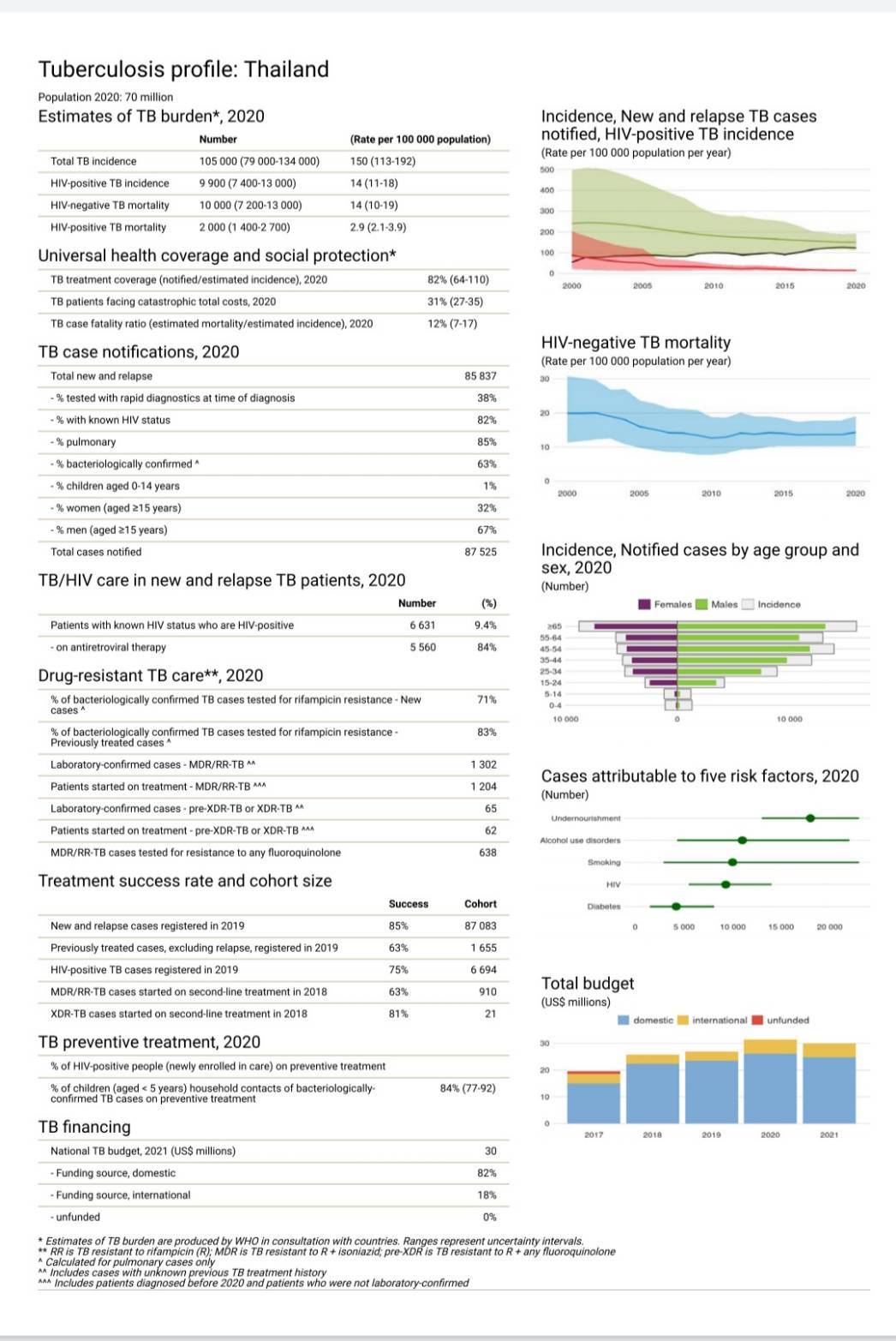 องค์การอนามัยโลก (WHO) ประกาศให้ประเทศไทยพ้นจาก 14 ประเทศที่มีปัญหาพบผู้ป่วยวัณโรคสูง ซึ่งเป็นความสำเร็จอีกขั้นหนึ่งของประเทศไทย แม้ว่าขณะนี้ผู้ป่วยวัณโรคดื้อยาในประเทศจะมีจำนวนลดน้อยลง แต่ปัญหาวัณโรคที่สัมพันธ์กับการติดเชื้อเอชไอวี ก็ยังเป็นปัญหาที่สำคัญอยู่ ซึ่งกรมควบคุมโรค โดยกองวัณโรค พร้อมดำเนินการร่วมกับภาคีเครือข่ายทุกภาคส่วน ในการแก้ไข้ปัญหาดังกล่าวเพื่อให้บรรลุเป้าหมายหลักที่สำคัญในการยุติวัณโรคภายในปี 2578