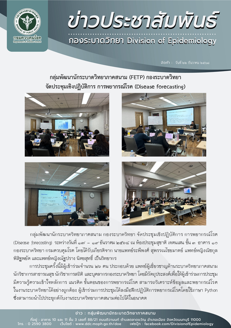 กลุ่มพัฒนานักระบาดวิทยาภาคสนาม (FETP) กองระบาดวิทยา จัดประชุมเชิงปฏิบัติการ การพยากรณ์โรค (Disease forecasting)